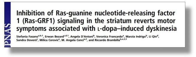 Authors: Fasano S, Bezard E, D’Antoni A, Francardo V, Indrigo M, Qin L, Doveró S, Cerovic M, Cenci MA, Brambilla R.