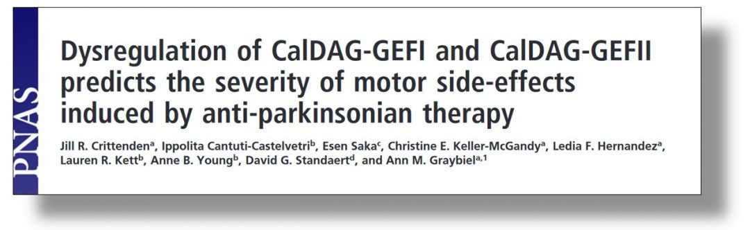 Title: Dysregulation of CalDAG-GEFI and CalDAG-GEFII predicts the severity of motor side-effects induced by anti-parkinsonian therapy.