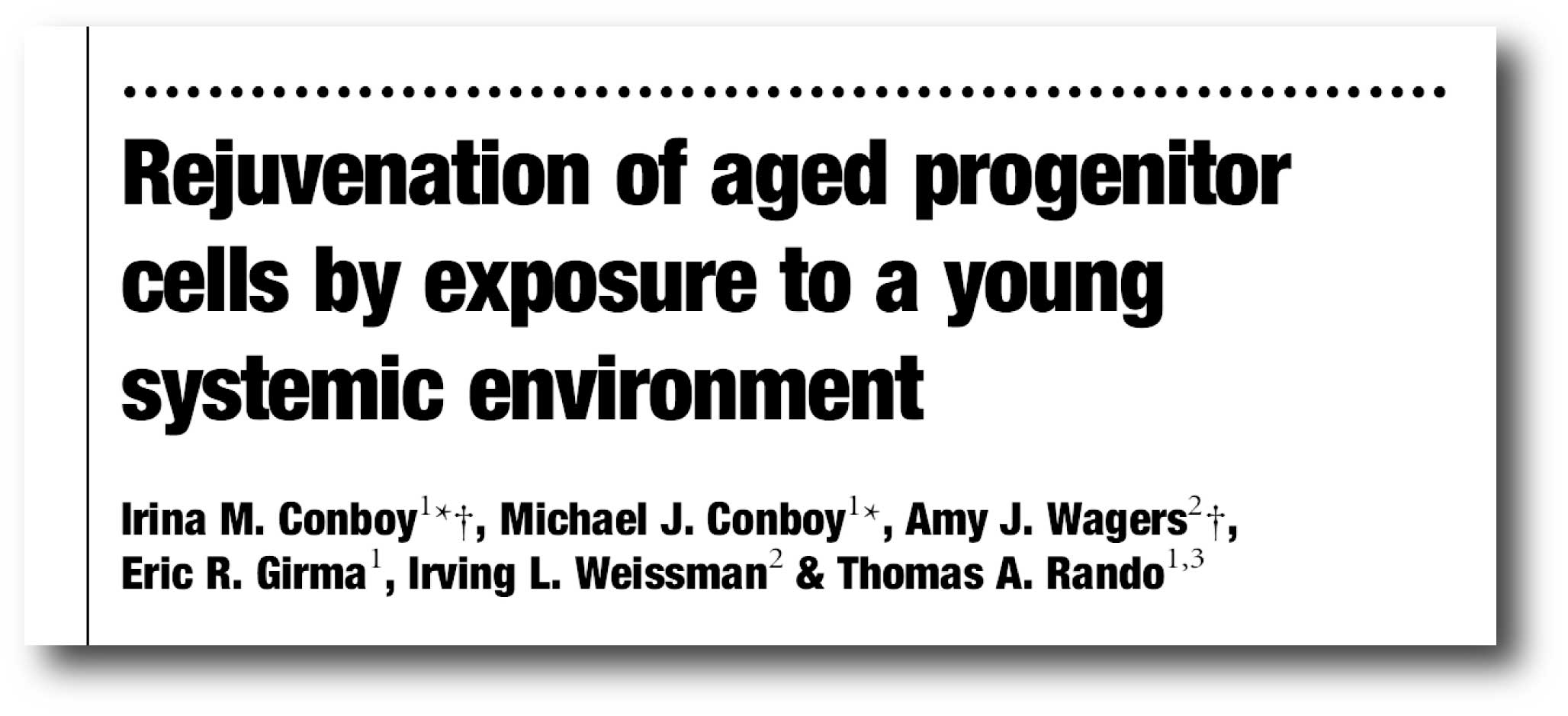 Authors: Conboy IM, Conboy MJ, Wagers AJ, Girma ER, Weissman IL, Rando TA.