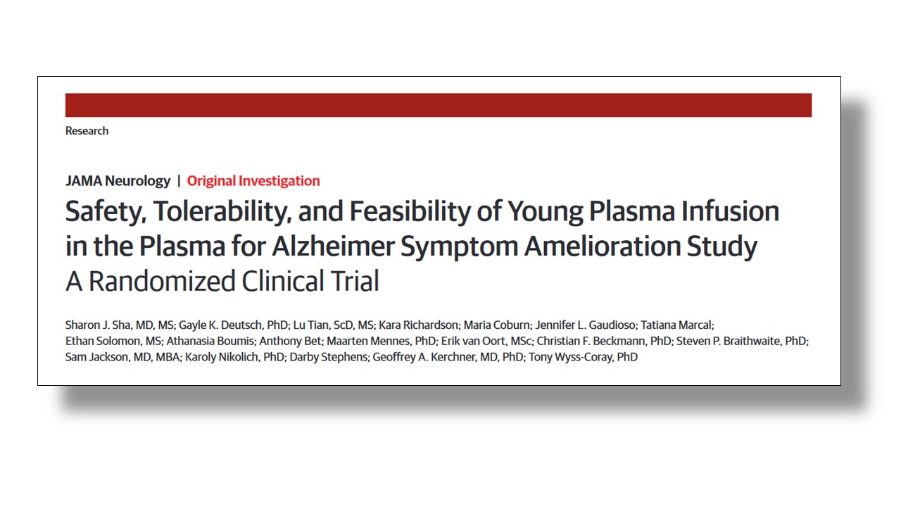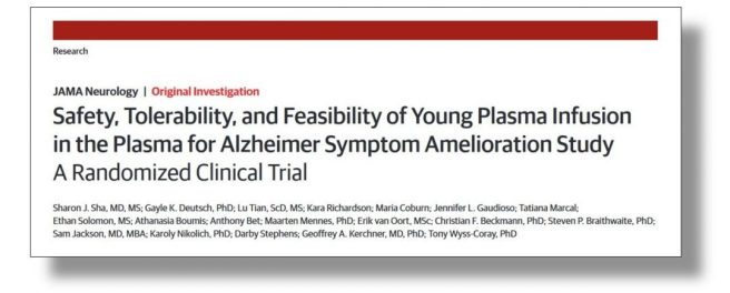 Title: Safety, Tolerability, and Feasibility of Young Plasma Infusion in the Plasma for Alzheimer Symptom Amelioration Study: A Randomized Clinical Trial.