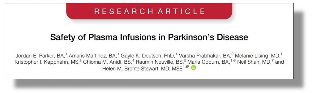 Title: Safety of Plasma Infusions in Parkinson’s Disease.