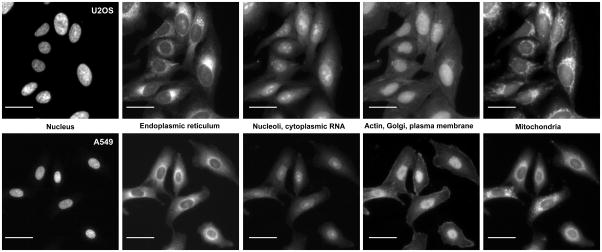 It involved using six fluorescent dyes that could be imaged across five different channels, to reveal eight broadly relevant cellular components (also know as organelles).