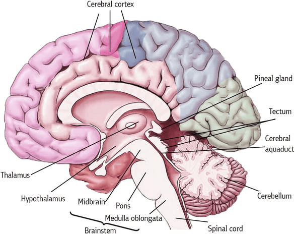 The dark pigmented dopamine neurons in the substantia nigra are reduced in the Parkinsonian brain (right). Source:Memorangapp