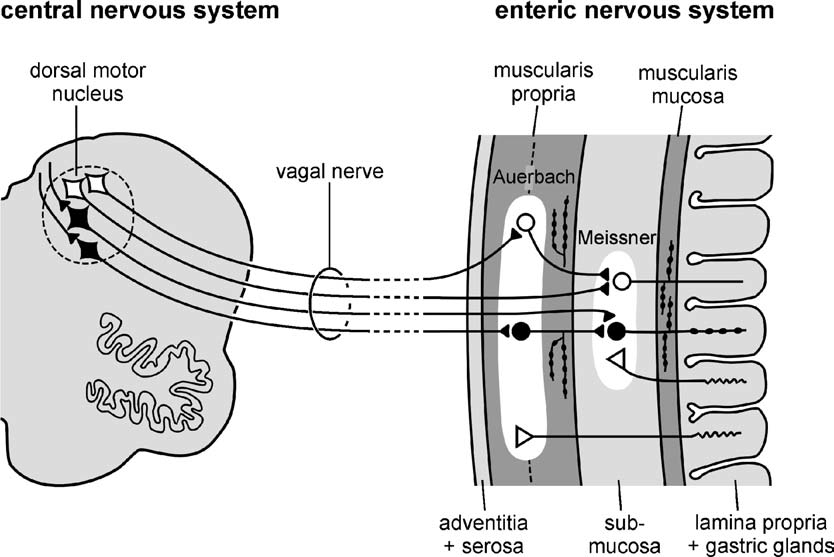 The vagus/vagal nerve connection with the enteric nervous system. Source: Nature