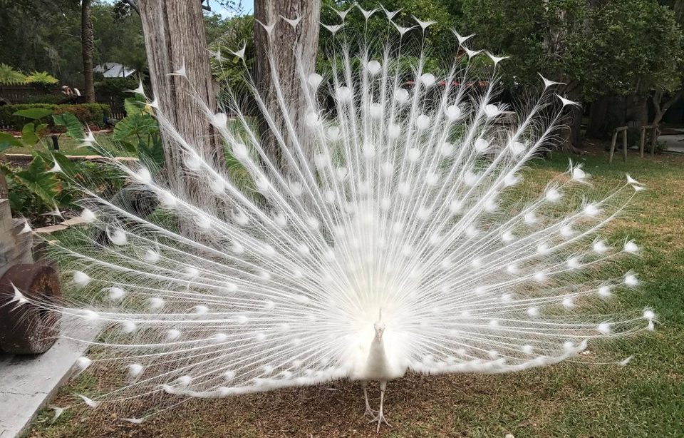 You also have “India Blue Pied” peacocks, which have 30-50 percent white feathers replacing the coloured feathers: