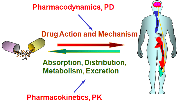 Pharmacokinetics, on the other hand, looks at how the organism affects the drug (eg. how well is it absorbed and excreted) – basically, the researchers is asking what does the body do to the drug.
