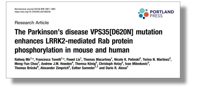 Title: The Parkinson’s disease VPS35[D620N] mutation enhances LRRK2-mediated Rab protein phosphorylation in mouse and human.