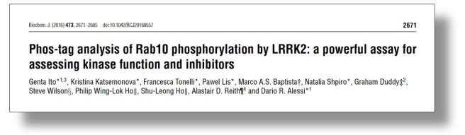 Title: Phos-tag analysis of Rab10 phosphorylation by LRRK2: a powerful assay for assessing kinase function and inhibitors.