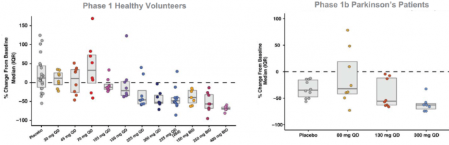 The data supports further clinical investigations, suggesting a once daily oral dosing regime. It will be interesting to see how DNL151 is tolerated over a longer period of treatment time and (of course) whether it can impact the progression of PD.