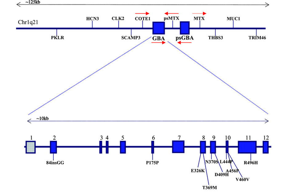 The GBA gene and mutations associated with Parkinson’s. Source: Neurology