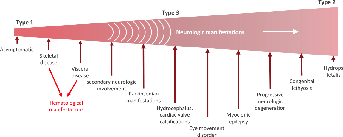 These subtypes of Gaucher disease are characterised by the presence or absence of neurological issues, and by the rate of disease progression and severity:
