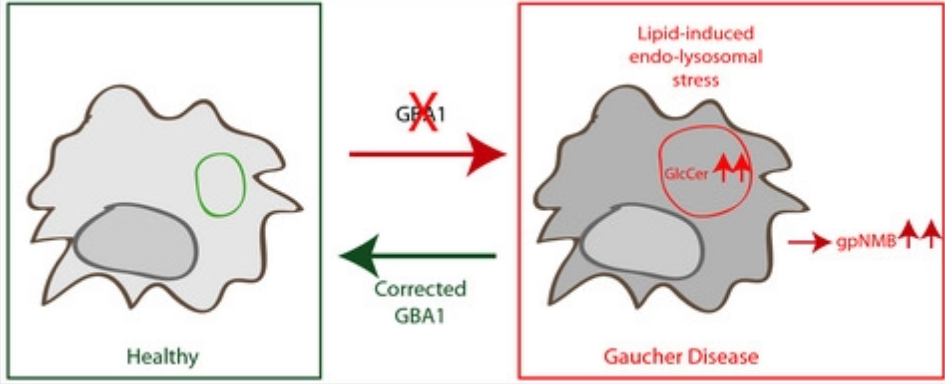 A third study found that GPNMB levels in the brains of a mouse model of Gaucher disease correlated with disease severity in the mice, and also reported elevated GPNMB levels in brain samples from patients with Gaucher disease.