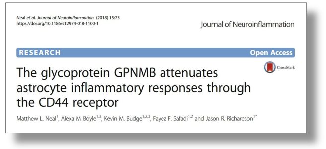 And the neuroprotective potential of GPNMB has also been reported in models of amyotrophic lateral sclerosis (ALS/motor neuron disease – Click here to read more about this) and stroke (Click here to read more about that).
