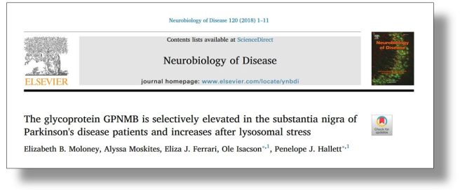 In this study, the investigators reported increased levels of GPNMB in the substantia nigra of postmortem brains of people who passed away with Parkinson’s (n=31, compared to 17 control cases).