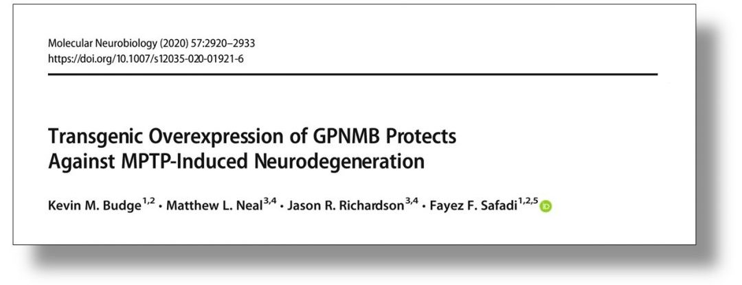 Title: Transgenic Overexpression of GPNMB Protects Against MPTP-Induced Neurodegeneration.
