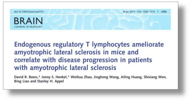 There has also been an analysis of Treg cells (again, by Prof Appel and colleagues) in blood collected from individuals affected by Amyotrophic Lateral Sclerosis (or ALS; also known as motor neuron disease):