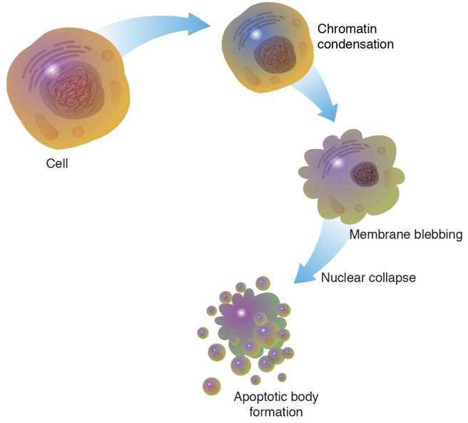 Apoptosis is a process of programmed cell death by which a cell will undergo an orderly sequence of events which ultimately leads to death of that cell. It is a very clean, orderly, and efficient way of removing old cells.