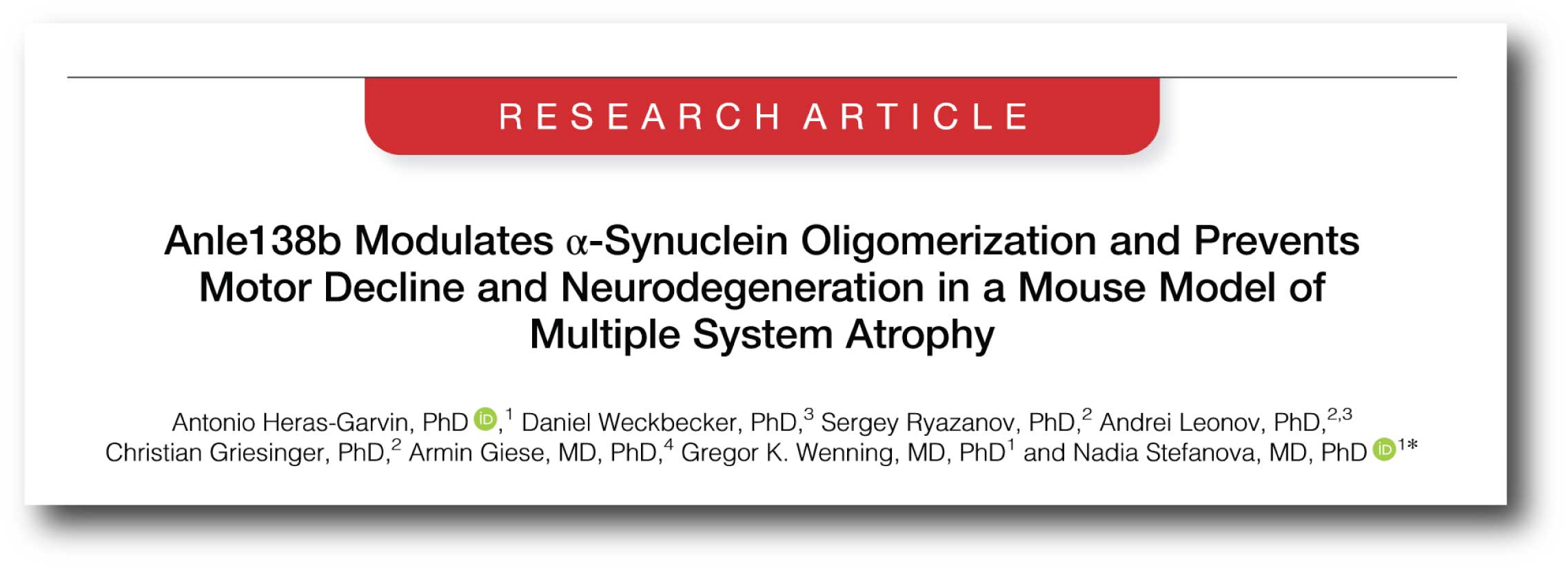 Authors: Heras-Garvin A, Weckbecker D, Ryazanov S, Leonov A, Griesinger C, Giese A, Wenning GK, Stefanova N.