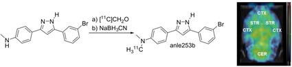 Title: (11) C Radiolabeling of anle253b: a Putative PET Tracer for Parkinson’s Disease That Binds to alpha-Synuclein Fibrils in vitro and Crosses the Blood-Brain Barrier.