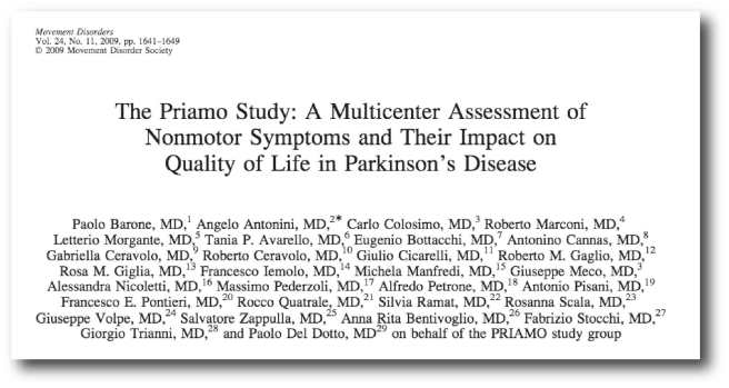 Title: The PRIAMO study: A multicenter assessment of nonmotor symptoms and their impact on quality of life in Parkinson’s disease.