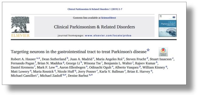Authors: Hauser RA, Sutherland D, Madrid JA, Rol MA, Frucht S, Isaacson S, Pagan F, Maddux BN, Li G, Tse W, Walter BL, Kumar R, Kremens D, Lew MF, Ellenbogen A, Oguh O, Vasquez A, Kinney W, Lowery M, Resnick M, Huff N, Posner J, Ballman KV, Harvey BE, Camilleri M, Zasloff M, Barbut D.