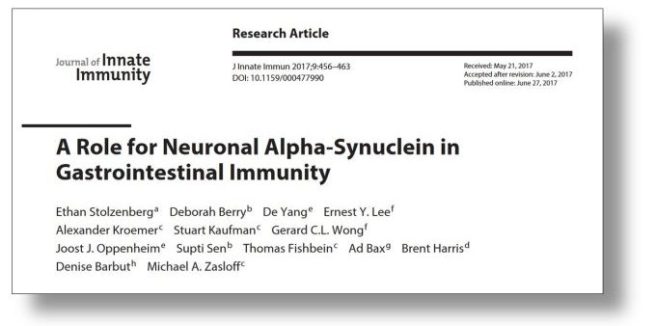 Meanwhile, the preclinical data – indicating that neurons may be secreting alpha synuclein in response to an infection or stressor, and this action is playing a role in the inflammatory activities of the immune system – could have important implications for ongoing clinical trials targeting both alpha synuclein and inflammation. Immunotherapy studies (which involve antibodies that target alpha synuclein protein) have been targeting the transfer of alpha synuclein from one cell to another in the brain, but based on these new results, this therapeutic approach could potentially be useful at dampening down inflammation, particularly in areas like the gut.