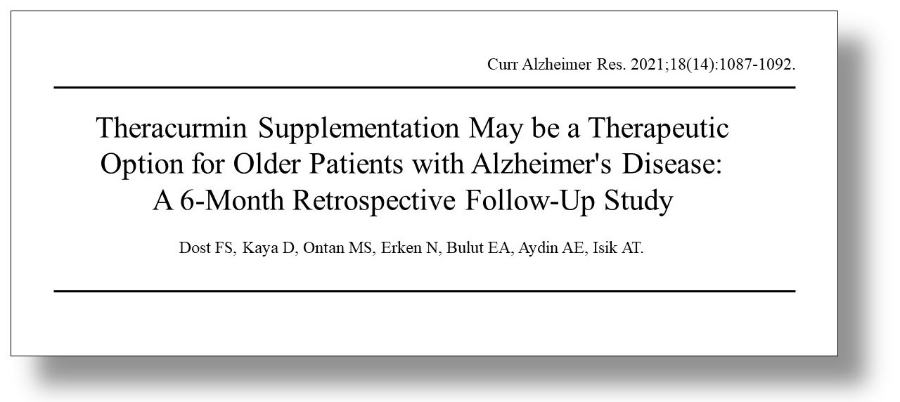 Title: Theracurmin Supplementation May be a Therapeutic Option for Older Patients with Alzheimer’s Disease: A 6-Month Retrospective Follow-Up Study.