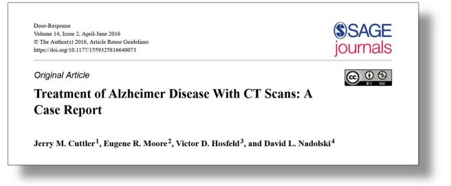 In this study, four dementia patients (82-90 years of age) volunteered to undergo three consecutive treatments of low-dose ionizing radiation, with each scan being two weeks apart. Clinical measures of cognition and behavior were taken both pre- and post- scans. Each scan delivered a dose of 40 mGy (we’ll discuss what this means in a moment) within 10 seconds to the head (Click here to read more about the details of this study)