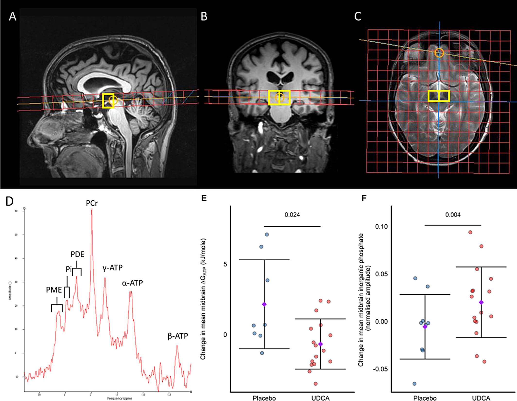 In the Minnesota UDCA study, the researchers used a brain imaging technique called 31P-MRS to determine if UDCA increased levels of ATP levels in the brains of the participants.