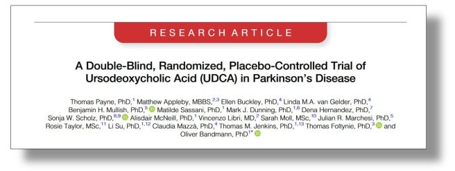 Title: A Double-Blind, Randomized, Placebo-Controlled Trial of Ursodeoxycholic Acid (UDCA) in Parkinson’s Disease.
