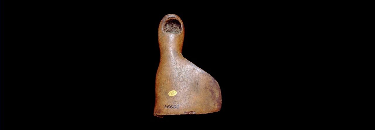 You see, when it was constructed (between 2,700 and 3,000 years ago), most artificial limbs were only cosmetic, rather than functional. And this difference is made particularly clear when one compares the “Cairo toe” with other early prosthetics of the same age that do not bend (Source):