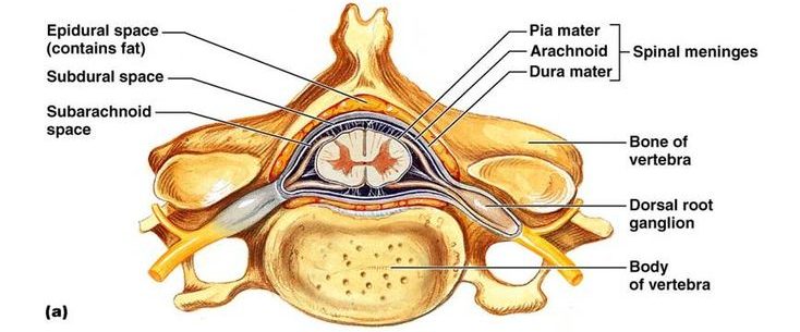 The spinal cord is covered by a protective membrane called ‘meninges’. Note that the outer layer of meninges is referred to as the dura mater. The space between the surrounding vertebrae and the dura mater is called the epidural space (This it important in relation to the rest of the post). Administration of anaesthesia into the epidural space can cause a loss of sensation, by blocking the transmission of signals through nerve fibers in or near the spinal cord. As such, “epidurals” are commonly used for pain relief during childbirth and surgery.