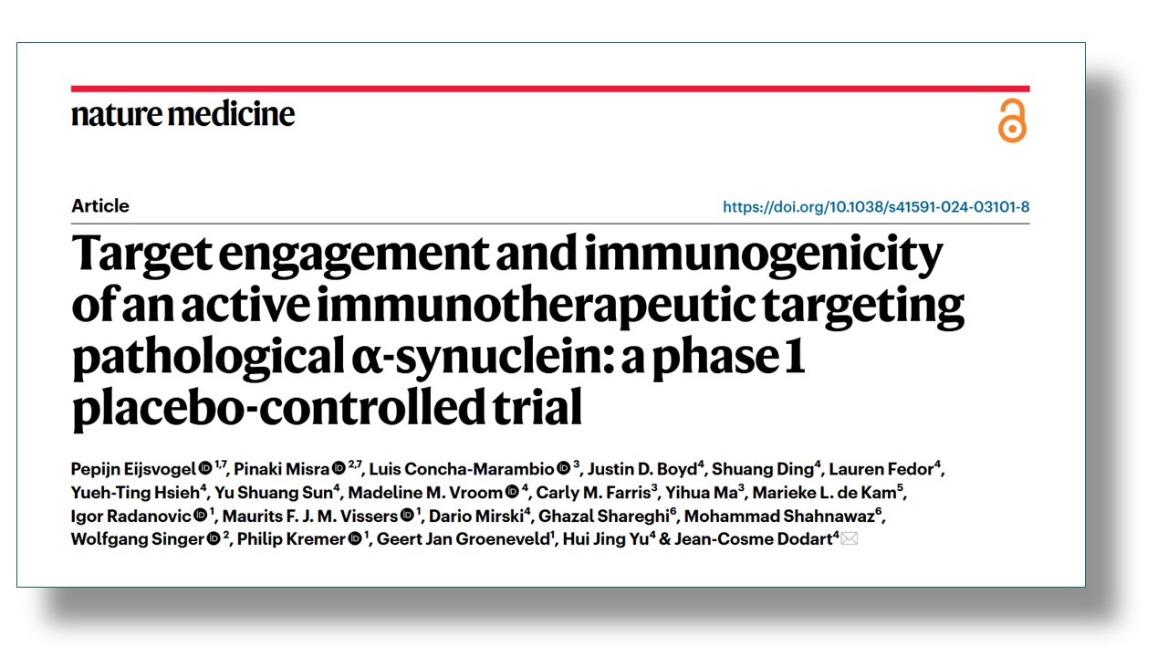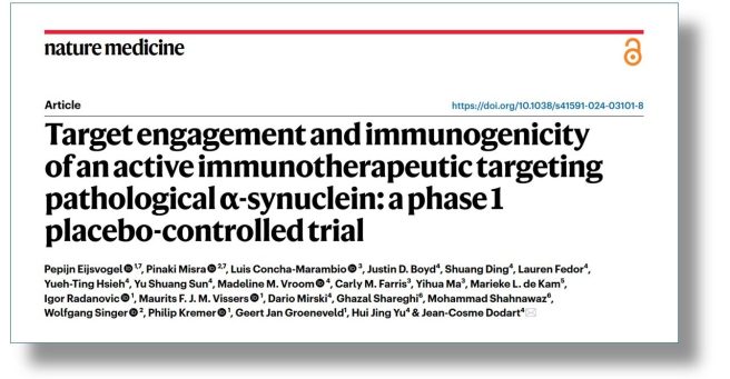 Title: Target engagement and immunogenicity of an active immunotherapeutic targeting pathological α-synuclein: a phase 1 placebo-controlled trial.