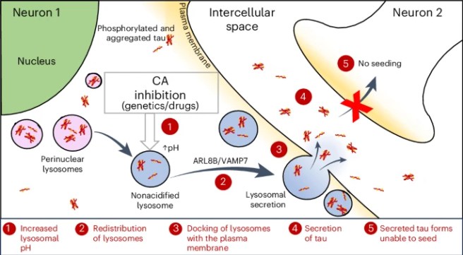 Researchers reported that carbonic anhydrase inhibition ameliorates Tau toxicity (via enhanced tau secretion). They identified this through a Zebrafish drug screen and CRISPR experiment. Then they tested methazolamide in a mouse model of Alzheimer’s (PS19 tau transgenic mice) and found that it reduced total & phosphorylated tau levels (Click here to read more about this). It is interesting to note here that zonisamide (aka Zonegran – a commonly used Parkinson’s agent) is also a carbonic anhydrase inhibitor.
