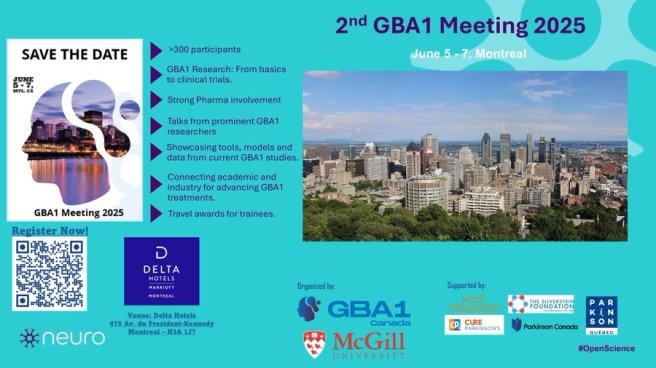 - The second GBA1 Meeting hosted by The Neuro in McGill University in Montreal (June 5th-7th). Three days of lectures, discussions, networking & workshops on all things GBA1 (including GBA1-associated Parkinson’s – click here to read more about this).