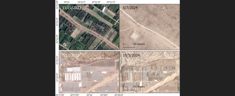 March 1st – 50% of food consumed in Gaza is produced in the region. Analysing PlanetScope and SkySat-sourced satellite imagery, a newly published paper reported that between October 2023 and September 2024, 64–70% of tree crop fields and 58% of greenhouses were damaged on agricultural land in Gaza. “By the end of 2023, all greenhouses in North Gaza and Gaza City had been damaged” (Click here to read the report and click here to a press summary).