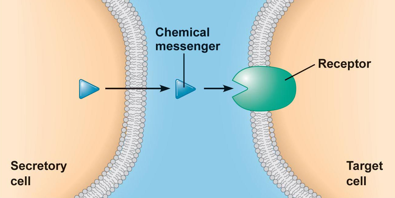 Each type of receptor has a particular structure, which is specific to certain shaped ligands (the chemical messenger I mentioned above). These ligands are floating around in the extracellular space (the world outside of the cell), having been released (or secreted) by other cells.