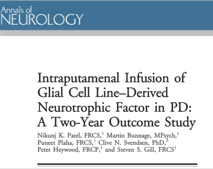Title: Intraputamenal infusion of glial cell line-derived neurotrophic factor in PD: a two-year outcome study.